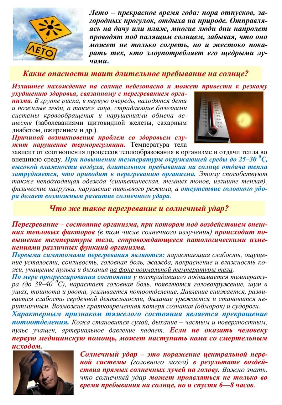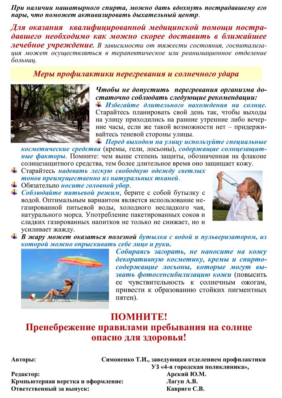 Как уберечься от перегреваний и солнечного удара (листовки)