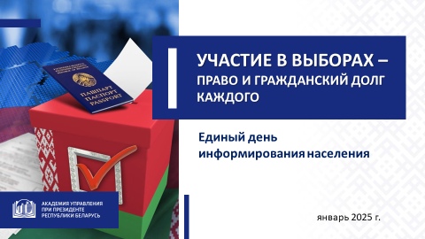 Наша встреча проходит в преддверии ключевого общественно-политического события пятилетия. За последние месяцы и недели про президентские выборы сказано многое. А может даже и все. О необходимости проведения их на высоком уровне и строго в соответствии с законом говорит и Глава государства: «как обычно, по-белорусски, чисто, аккуратно, на глазах всего мирового сообщества изберем своего Президента» (из выступления А.Г.Лукашенко 19 октября 2024 г. на фестивале-ярмарке «Дажынкі-2024» в г.Воложине).