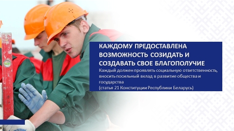 Настраивая на продуктивную работу, Глава государства А.Г.Лукашенко подчеркивает: «Помните, что то, что не сделали вы, никто не сделает. Каждый должен делать свое дело. Каждый за свой клочок земли, за свой кусочек работы отвечает и должен это делать. Это – главное».