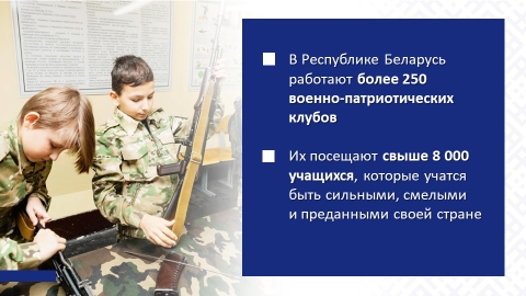 Среди ярких примеров инициатив в сфере гражданско-патриотического воспитания: создание сквера по увековечиванию павших «Сад памяти» (Ельский район, Гомельская обл.), установка памятного знака сожженным деревням (д.Мариново, Ляховичский район, Брестская обл.), создание памятного знака с колоколом и уникальными историческими фотографиями «Дорога памяти – Зельвенский прорыв» (г.п.Зельва, Гродненская обл.), благоустройство территории памятника «Братская могила» (аг.Заямное, Минская обл.) и другие.