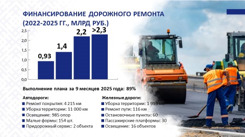 Понимая, что качественная автодорожная сеть способствует безопасным и комфортным поездкам пассажиров, грузоперевозкам, за последние годы значительно увеличилось финансирование на ремонт и реконструкцию республиканских и местных дорог (2022 год – 930 млн, 2025 год – более 2,3 млрд рублей).