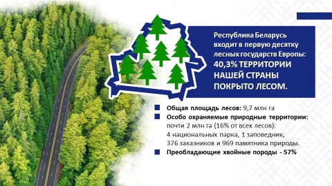 Республика Беларусь входит в первую десятку самых лесных стран Европы: более 40% территории Беларуси покрыты лесами. Беларусь стала единственной страной на постсоветском пространстве, которая за годы независимости сумела увеличить площадь лесов (практически на 1 млн га и превысила 9,7 млн га).