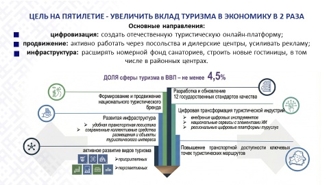К числу приоритетов отнесена реализация туристического потенциала. Задача – удвоить вклад в ВВП от индустрии гостеприимства.