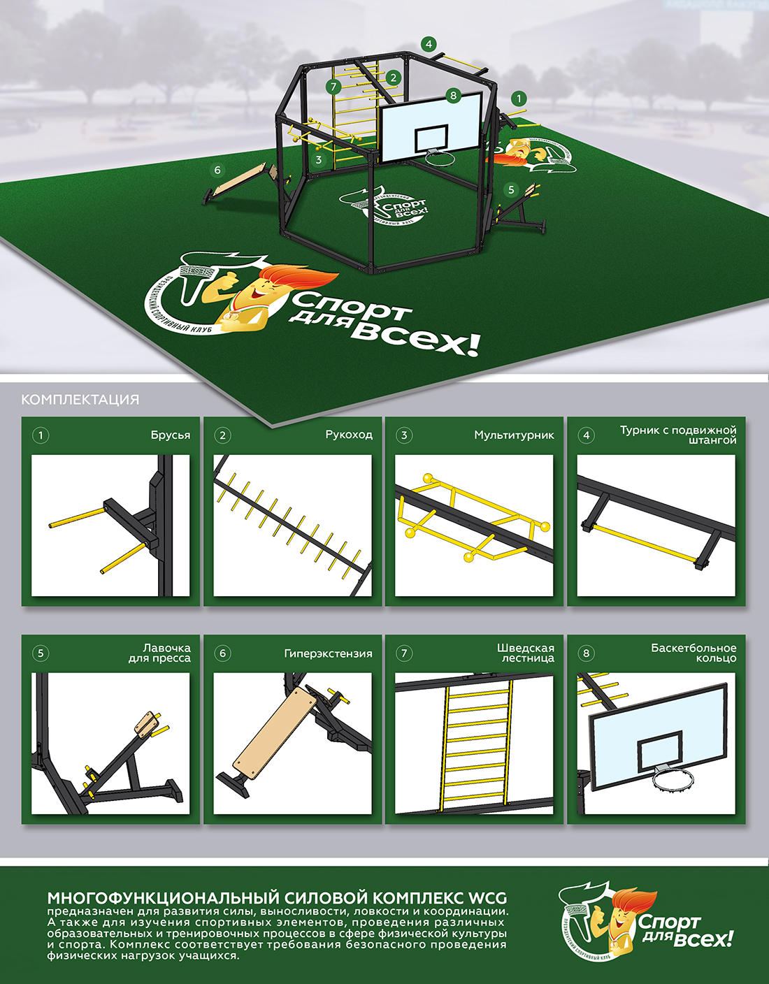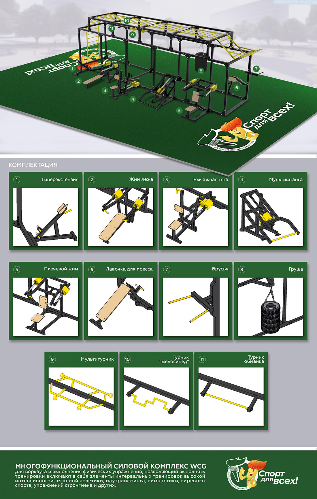 Реализация проекта подразумевает строительство комплексных и комфортных площадок по Street Workout, на которых будет удобно выполнять широкий набор упражнений как подросткам, так и взрослым, в том числе с ограниченными физическими возможностями (параворкаут).